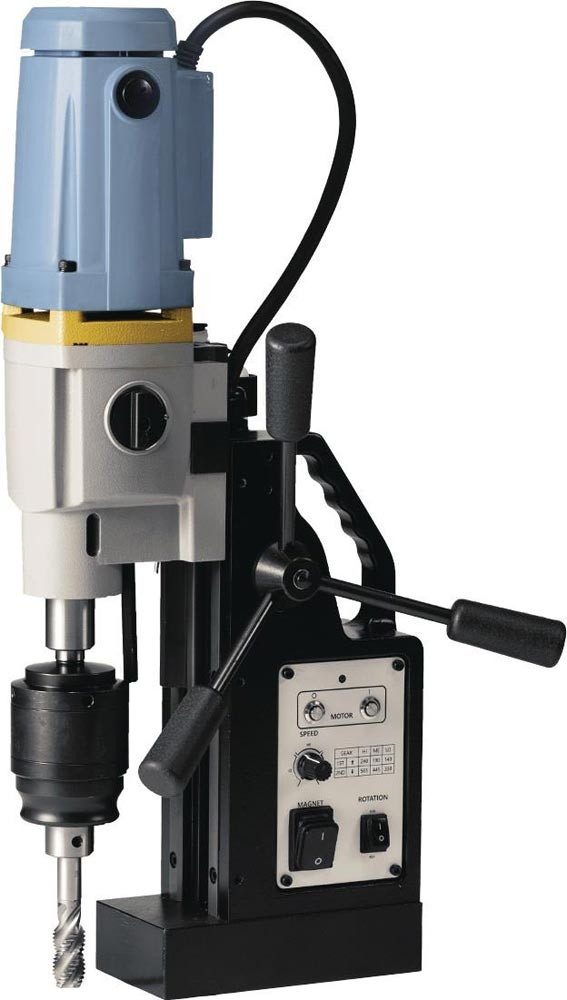 Kernbohren bis Ø 60 mm · Gewindeschneiden bis M20 · Vollbohren bis Ø 23 mm · umkehrbarer 2-Gang-Motor/6 Geschwindigkeiten · verbesserte magnetische Haftung · schnelles und einfaches Umrüsten auf Vollbohren dank MK2-Aufnahme · Überlastungsschutz (LED)