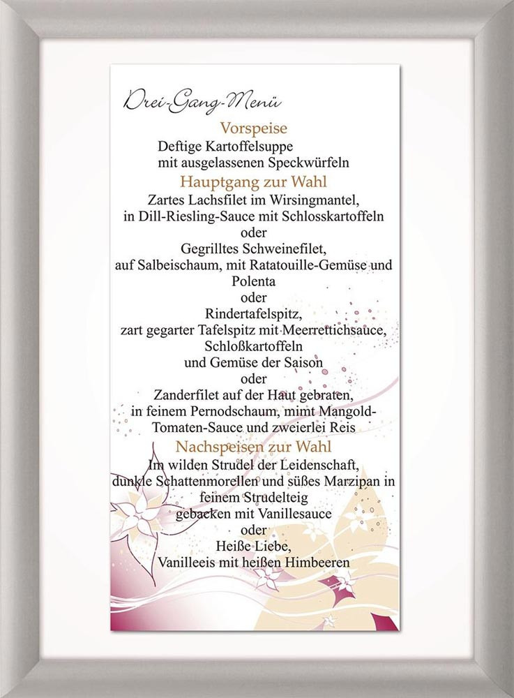 25-mm-Klemmprofil · Aluminium Wechselrahmen, silberfarbig eloxiert · Ecken auf Gehrung geschnitten · Rückwand aus bruchsicherem, schlagfestem Polystyrol · mit UV-stabilisierter Anti-Reflexionsfolie · einfache Wand-Montage durch verdeckte Lochbohrung im Unterprofil (Montagematerial nicht im Lieferumfang enthalten)