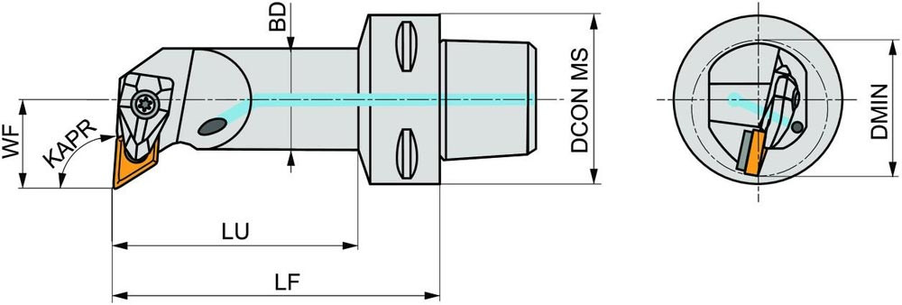 Klemmhalter ISO C4-DDUNR-17090-11 D.40mm m. Polygonkupplung Rechtslauf