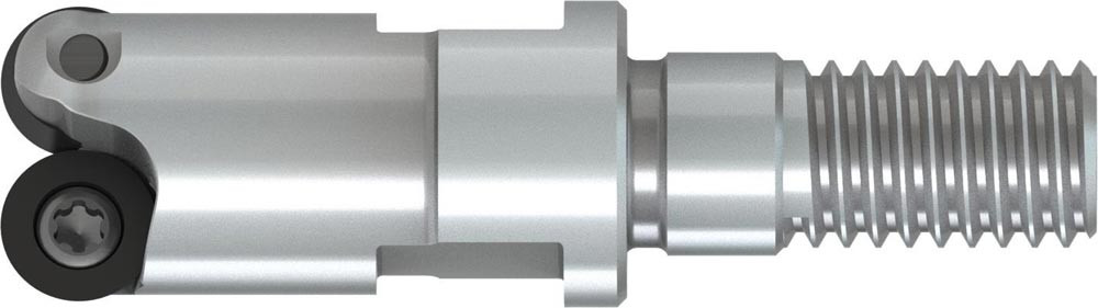 Plan-Kopierfräser mit doppelt positiver Geometrie welche 2 aus RD.. 0501MO.. einseitige Wendeschneidplatte · Schneiddurchmesser bis maximal 10mm mit M6 Gewindeschaft für standardisierte modulare Trägerwerkzeuge · 20mm funktional und 35mm Einsatzlänge · durchgehende Kühlung zum Planfräsen · Kopierfräsen · Rampen · progressiven Tauchfräsen und helikalen Fräsen mit einer maximalen Schnitttiefe von 1.5mm