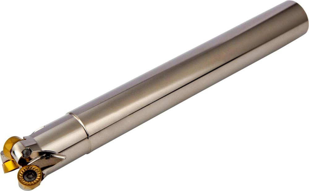 Kopier-Planfräser mit doppelt negativer Geometrie zum spannen von 3 Stück RCMT 10T3MO.. einseitigen Wendeschneidplatten · Schnittdurchmesser 25mm mit 20mm Zylinderschaft gemäß DIN 1835A · 34mm Funktionslänge 170mm Gesamtlänge · Kühlkanalbohrung zum Planfräsen · Kopierfräsen · Rampen · Helikalen Fräsen und progressiven Eintauchen mit einer maximalen Schnitttiefe von 5.0mm