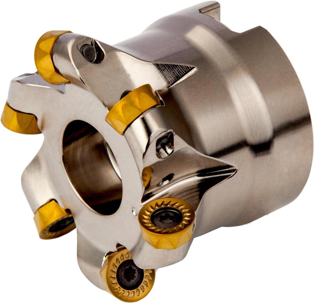 Kopier-Planfräser mit doppelt negativer Geometrie zum spannen von 6 Stück RCMT 10T3MO.. einseitigen Wendeschneidplatten · Schnittdurchmesser 50mm mit 22mm Verbindungsbohrung gemäß DIN 8030-A · 40mm Überstandslänge · Kühlkanalbohrung zum Planfräsen · Kopierfräsen · Rampen · Helikalen Fräsen und progressiven Eintauchen mit einer maximalen Schnitttiefe von 5.0mm