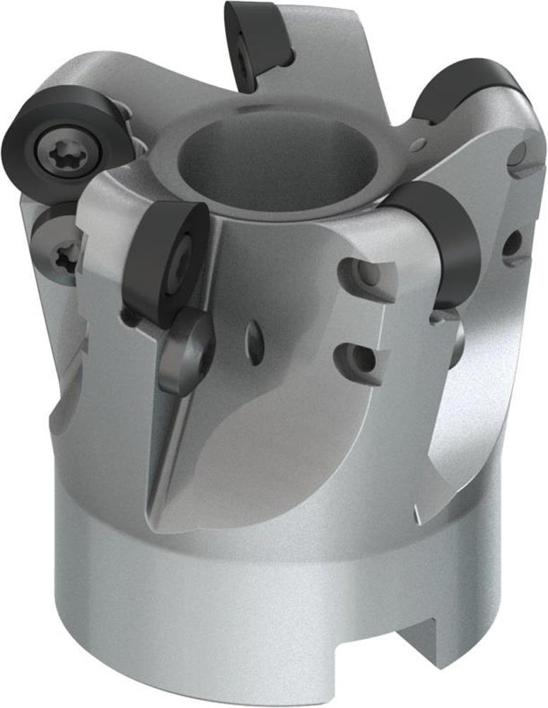 Plan-Kopierfräser mit doppelt positiver Geometrie welche 5 aus RD.. 12T3MOT oder RDHT 12T3MO-FA einseitige Wendeschneidplatte · Schneiddurchmesser bis maximal 52mm mit 22mm Bohrung gemäß DIN 8030-A · 50mm funktional und · durchgehende Kühlung zum Planfräsen · Kopierfräsen · Rampen · progressiven Tauchfräsen und helikalen Fräsen mit einer maximalen Schnitttiefe von 3mm