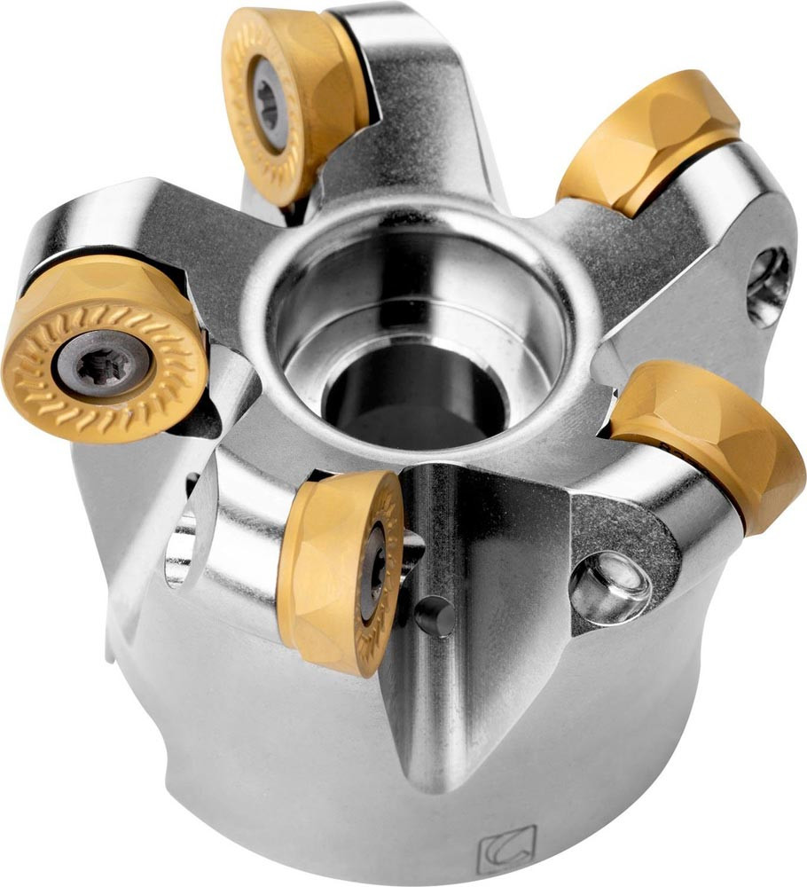 Kopier-Planfräser mit doppelt negativer Geometrie zum spannen von 5 Stück RCMT 1606MO.. einseitigen Wendeschneidplatten · Schnittdurchmesser 80mm mit 27mm Verbindungsbohrung gemäß DIN 8030-A · 50mm Überstandslänge · Kühlkanalbohrung zum Planfräsen · Kopierfräsen · Rampen · Helikalen Fräsen und progressiven Eintauchen mit einer maximalen Schnitttiefe von 8.0mm