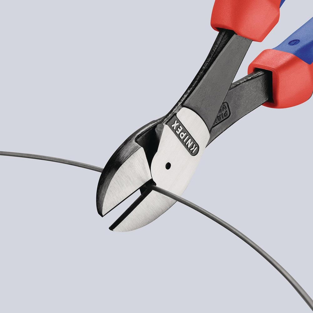 20 % Kraftersparnis gegenüber herkömmlichen Seitenschneider · Schneiden zusätzlich induktiv gehärtet, Schneidenhärte ca. 64 HRC · Chrom-Vanadin-Hochleistungsstahl, geschmiedet, mehrstufig ölgehärtet