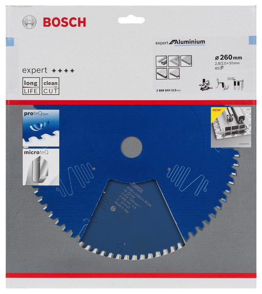 Das Expert for Aluminium Kreissägeblatt macht perfekte Schnitte in Aluminium. Die einzigartigen Extra Hard Microteq-Zähne aus der Eigenfertigung von Bosch werden aus sehr feinem Carbide-Korn hergestellt, das die Lebensdauer und Leistung des Blatts maximiert. Diese Leistung wird durch die Schutzbeschichtung ProteQtion des Blatts unterstützt. Sie verhindert Korrosion, ermöglicht zuverlässiges Schneiden und reduziert dabei die Reibung. Das Produkt ist mit Dämpfungsschlitzen für einen besonders ruhigen Lauf, deutlich weniger Geräusche und spürbar geringere Vibration ausgestattet. Dieses Sägeblatt für Aluminium, Nichteisenmetalle, Kunststoff, Epoxidharz und Holz verwenden. Das Kreissägeblatt Expert for Aluminium ist mit HLTCG-Zähnen (High-Low Triple Chip Ground) versehen, die robust genug für das Schneiden von Aluminium sind.