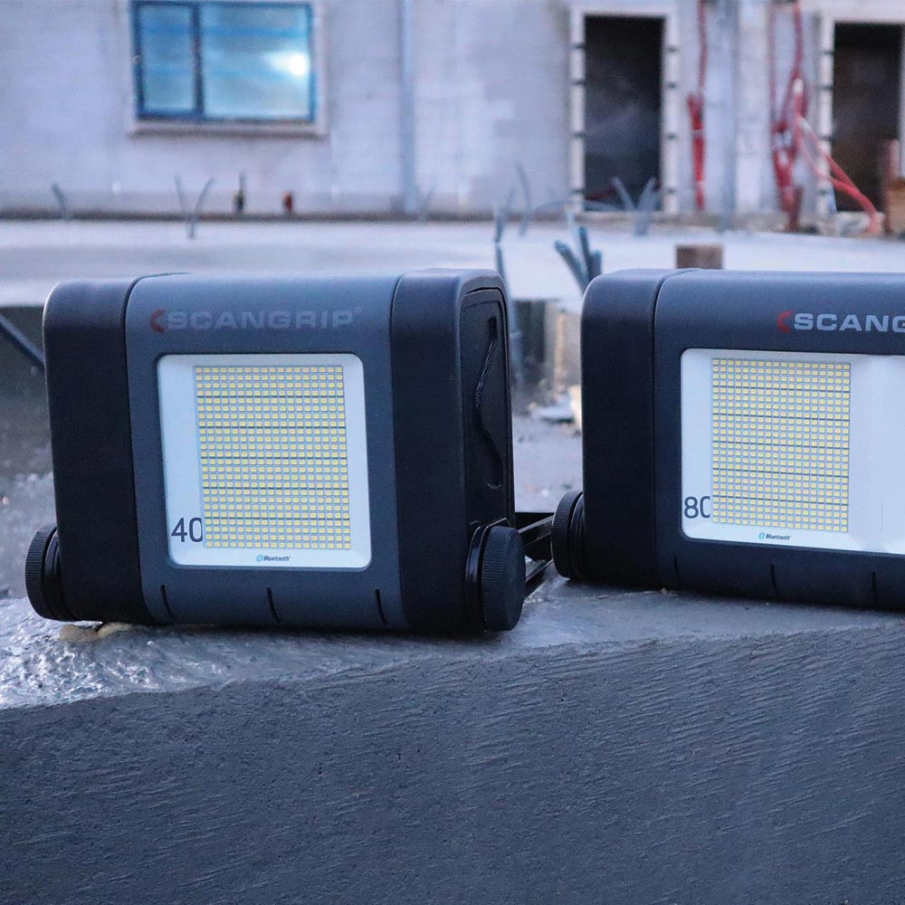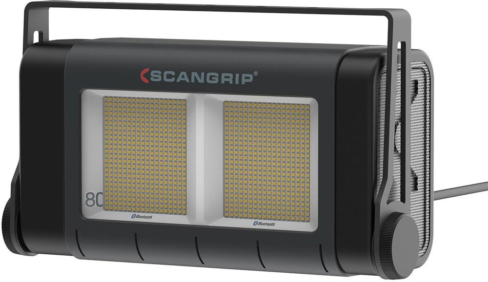 Baustellenstrahler für Großflächenbeleuchtung · breiter 120°-Abstrahlwinkel · mit Dimmfunktion · BLUETOOTH Lichtsteuerung ermöglicht mit dem Handy das Ein-/Ausschalten der Arbeitsleuchte sowie die Lichtleistung in vier Stufen anzupassen · integrierter Tragegriff · einfach auf einen Dreifußständer zu Mast zu montieren