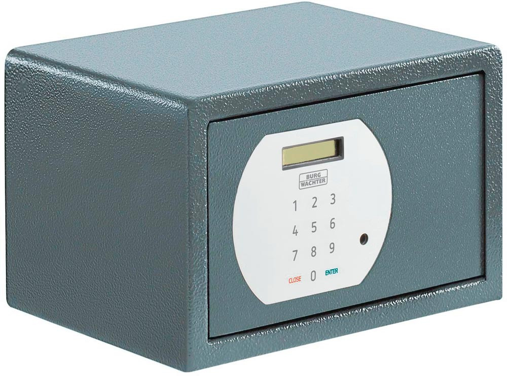 robuster einwandiger Korpus · Tür doppelwandig · verstärkte Riegelbolzen · Aufbohrschutz · für Wand- und Bodenbefestigung vorgerichtet (inkl. Befestigungsmaterial) · ideal für den Einbau in Schränke und andere Möbelstücke: Größe PS 130 mit Ordnertiefe · modernes, einfach programmierbares Elektronikschloss · Bequeme Handhabung durch motorgetriebene Verriegelung und automatische Türöffnung · verschiedene Öffnungsmethoden: Generalcode für den Hotelier · änderbarer Benutzercode für den Gast · verständliche Kurzanleitung für den Gast · haptisches Feedback bei Tastendruck · klares und gut lesbares Display · Batteriebetrieb mit 1,5 V Mignon (inklusive 4 Batterien)