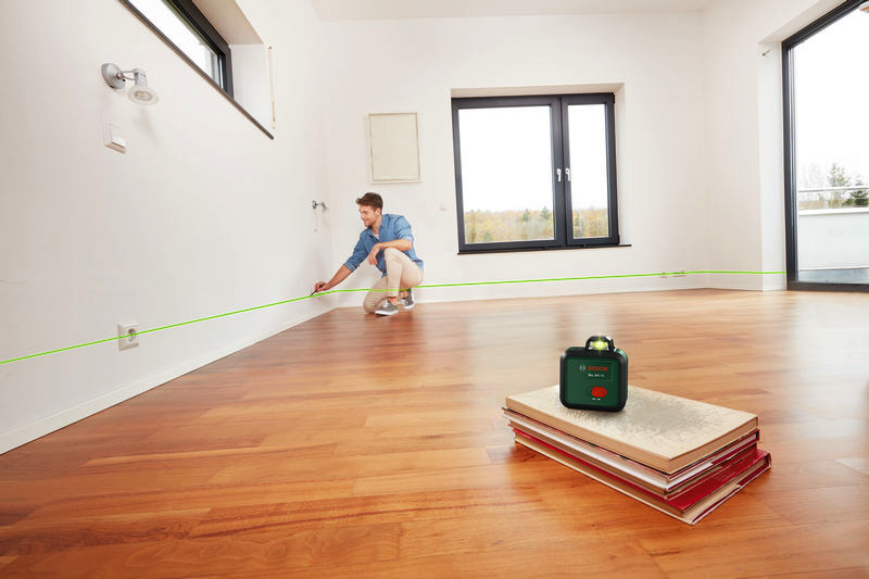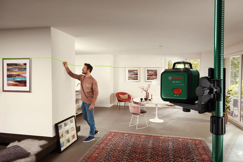 Linienlaser PLL 360-1G. Einwandfreies Nivellieren mit hervorragender Sichtbarkeit durch den gesamten Raum. Waagerechte 360°-Linie für genaues Ausrichten im ganzen Raum. Grüne Laserlinien: bis zu viermal besser sichtbar, sogar bei hellen Lichtverhältnissen. Neigungsfunktion für Arbeiten außerhalb des Selbstnivellierbereichs mit diagonalen Laserlinien. Hochwertige, helle Laserdioden mit einer Genauigkeit von ± 0,4 mm/m für präzise Arbeitsergebnisse. Integrierter 3,6-V-Li-Ion-Akku mit Aufladung im Gerät über USB-C®. Produkt mit Nachhaltigkeitsmerkmalen, weitere Informationen siehe unten. 1 x Akku BA 3.6V 2.0Ah. Tasche