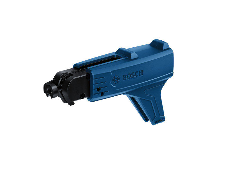 Magazinaufsatz für Trockenbauschrauber GMA 55, GMA 55 ist der Magazinaufsatz für Trockenbauschrauber für bequemes und schnelles Arbeiten auch in schwierigen Positionen dank ergonomischem Design und geringem Gewicht von weniger als 0,4 kg. Mit seinem Daumenrad lässt sich die Tiefe schnell einstellen, und eine werkzeuglose Einstellung der Schraubenlänge ist ebenfalls möglich. Das offene Design erleichtert die Reinigung, verhindert das Absetzen von Staub, und erhöht somit die Lebensdauer. Der Aufsatz GMA 55 eignet sich für Trockenbauschrauben mit bis zu 5 mm Durchmesser und einer Länge zwischen 25 und 55 mm. Seine Stärke zeigt sich bei sich wiederholenden Arbeiten wie das Anbringen von Trockenbauplatten an Zimmerdecken. Der GMA 55 ist kompatibel mit allen Bosch Professional Trockenbauschraubern und Akku-Trockenbauschraubern wie GTB 18V-45, GTB 12V-11 oder GSR 18 V-EC TE. Der PowerSAVE-Modus des Bosch GTB 18V-45 Professional funktioniert auch mit dem Magazinaufsatz GMA 55. In der Packung ist auch ein PH2-Schrauberbit (145 mm) enthalten. 1 x Schraubendrehereinsatz (Bit) Ph 2