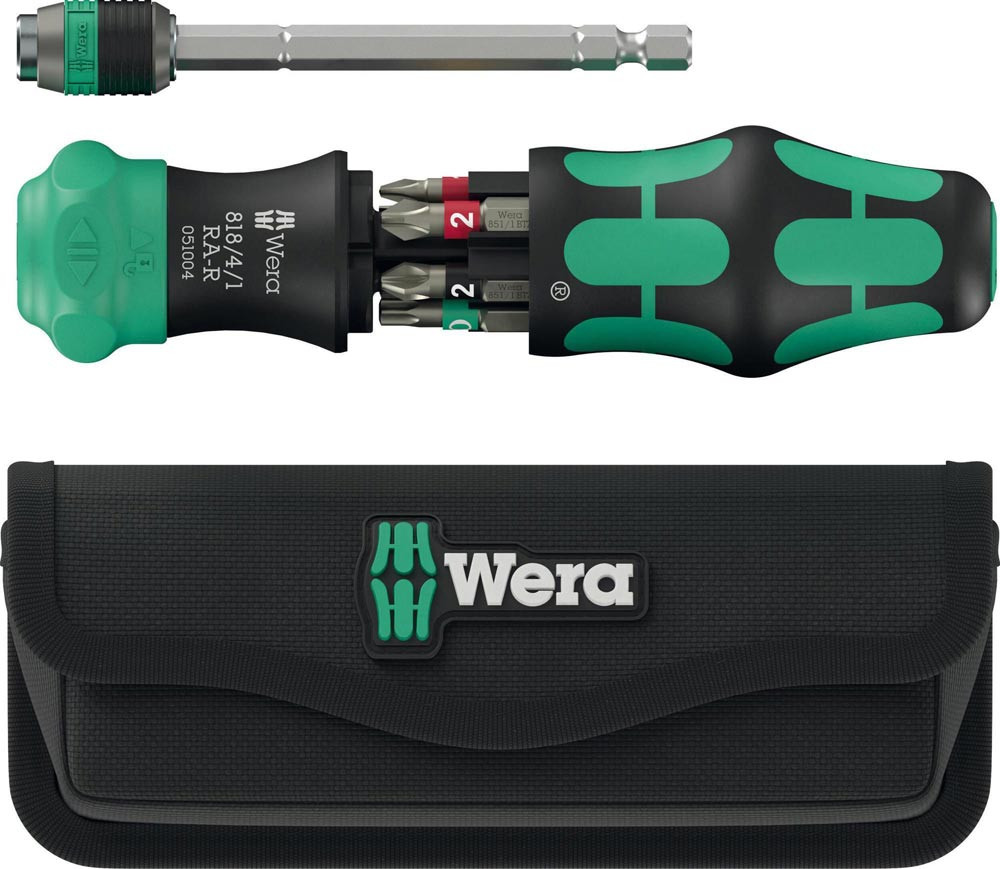 geeignet für Bits mit 1/4″-Außensechskantantrieb nach DIN ISO 1173-C 6,3 und E 6,3 und Wera Anschluss-Reihen 1 und 4 · im Griff integrierte Ratsche mit Feinverzahnung, intuitives Umschalten · für präzise Arbeiten kann die Ratschenmechanik mit der 0-Position deaktiviert werden · 1/4″-Innensechskantaufnahme, magnetisch · Verbindungsteil · Teleskopklinge · Rapidaptor-Technologie mit rapid-in, rapid-out, rapid-spin, chuck-all und single-hand-Funktion · 6 BiTorsion Bits für lange Lebensdauer, zähhart, für den universellen Einsatz · Take it easy Werkzeugfinder: Mit Abtrieb-Farbkennzeichung und Größenstempel für einfaches Finden des gewünschten Bits · Kraftform-Griff mit Abrollschutz, mehrkomponentig, integriertes Magazin