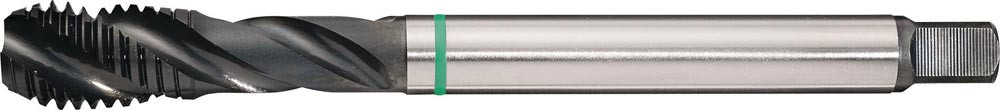 HSS-Co · Form C · Typ UNIVERSAL · vaporisiert · Grünring · mit Rechtsdrall 40° · Flanken hinterschliffen · metrisches ISO-Feingewinde MF · DIN 13 · Toleranzfeld ISO2 (6H) · für Sacklochgewinde · für Stahl, rostfreie Stähle, Sphäroguss und NE-Metalle
