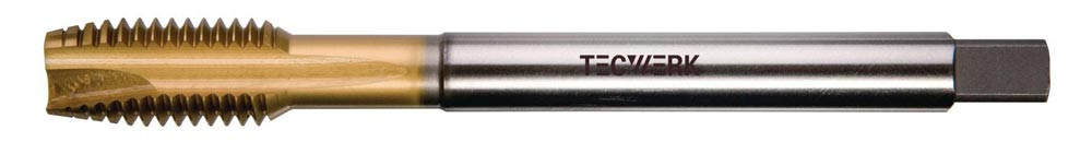 HSS-Co · Form B · TiN-beschichtet · geradegenutet · Flanken hinterschliffen · metrisches ISO-Gewinde · DIN 13 Blatt 1 · Toleranzfeld ISO2 (6H) · mit Schälanschnitt für Durchgangsgewinde · für Stähle bis 1000 N/mm² Festigkeit