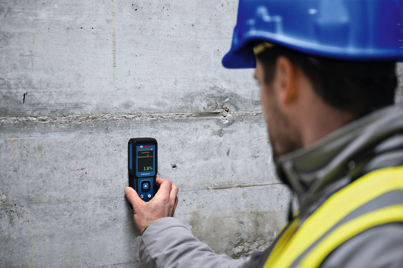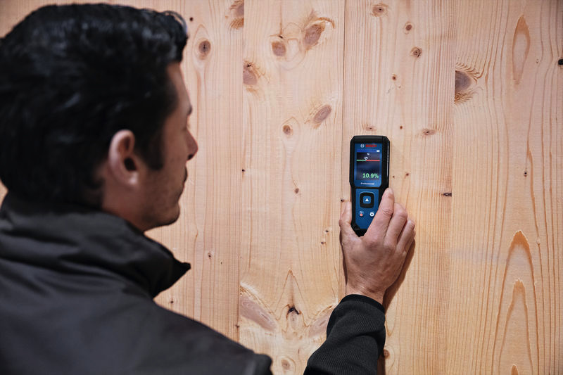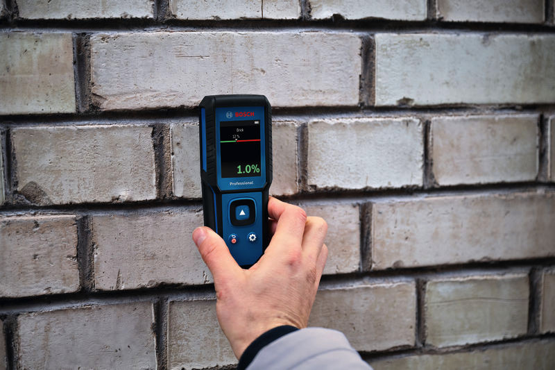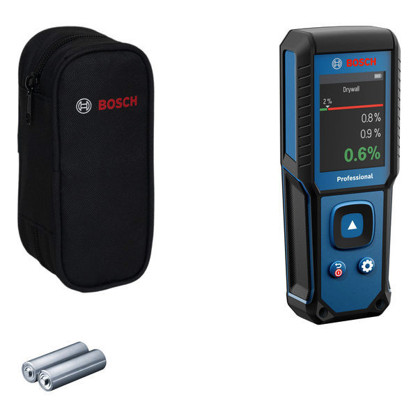 Materialfeuchtigkeitsmesser GMM 1-15, Das Materialfeuchtemessgerät GMM 1-15 Professional ist dein ideales Gerät für schnelle und genaue nicht-invasive Feuchtigkeitsmessungen (ohne Stifte). Es misst den Feuchtigkeitsgehalt von 37 Holzarten und 10 Arten von Baustoffen und zeigt die Ergebnisse auf einem kontrastreichen Farb-LCD-Bildschirm an. Die variable Schwellenwertskala erleichtert das Ablesen der Ergebnisse, während der Referenzmodus den Vergleich des Feuchtigkeitsgehalts in verschiedenen Bereichen ermöglicht. Das robuste Design, das gummiverstärkte Gehäuse und die Schutzart IP65 gewährleisten Langlebigkeit in rauen Baustellenumgebungen und bieten dir jederzeit zuverlässige Leistung unabhängig von den Bedingungen. Das Materialfeuchtemessgerät GMM 1-15 Professional ist unverzichtbar für Trockenbauer, Maler, Facility Manager, Architekten, Klempner und Schreiner. Es identifiziert effektiv Feuchtigkeitsquellen, überprüft die Oberflächenbeschaffenheit und misst den Feuchtigkeitsgehalt. Ganz gleich, ob du Trockenbauten inspizierst, eine gleichmäßige Lackierung sicherstellst oder den Feuchtigkeitsgehalt von Holz überwachst, das GMM 1-15 Professional hilft dir, genaue Auswertungen vorzunehmen. Die Kompatibilität mit dem Lithium-Ionen-Akku sorgt für einen unterbrechungsfreien Betrieb, sodass du dich auf die anstehende Aufgabe konzentrieren kannst. Das GMM 1-15 Professional verfügt über eine mittlere Taste zum Speichern von Messwerten, die das Erfassen und Überprüfen von Daten erleichtert. Die einstellbare Tonrückmeldung sorgt für eine akustische Bestätigung der Messungen, sodass du jederzeit sicher sein und effizienter arbeiten kannst. Dieses Materialfeuchtemessgerät wurde für eine einfache Handhabung entwickelt und ermöglicht es dir, in jeder Umgebung schneller und effektiver zu arbeiten. Tasche. 2 x 1,5 V LR6-Batterie (AA)
