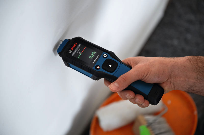 Materialfeuchtigkeitsmesser GMP 2-15, Das Materialfeuchtemessgerät GMP 2-15 Professional mit integriertem Thermo-Hygrometer ist dein ideales Werkzeug für schnelle und genaue Feuchtemessungen. Es misst die Feuchtigkeit in 37 Holzarten und 10 Baustoffarten und zeigt die Ergebnisse auf einem kontrastreichen Farb-LCD-Bildschirm an. Der integrierte Thermo-Hygrometer-Sensor überwacht die Umgebungstemperatur und die relative Luftfeuchtigkeit, um dir stets umfassende Daten zu liefern. Die einstellbare Schwellenwertskala vereinfacht die Interpretation der Ergebnisse und erleichtert dir damit genaue Auswertungen. Das robuste Design, das gummiverstärkte Gehäuse und die Schutzart IP65 halten den harten Bedingungen auf der Baustelle stand und bieten dir zuverlässige Leistung, egal bei welcher Arbeit. Dieses Materialfeuchtemessgerät ist unverzichtbar für Trockenbauer, Maurer, Zimmerleute, Maler, Facility Manager und Architekten. Es hilft dabei, Feuchtigkeitsquellen zu identifizieren, die Materialfeuchtigkeit zu bewerten und optimale Bedingungen für Maler- oder Bauarbeiten zu gewährleisten. Ganz gleich, ob es um die Überprüfung der Holzfeuchte vor der Montage oder die Beurteilung der Luftfeuchtigkeit in einem Gebäude geht, das GMP 2-15 Professional unterstützt deine Arbeit mit herausragender Präzision. Außerdem bietet dir die Kompatibilität mit dem Lithium-Ionen-Akku dauerhafte Leistung, sodass du dich ohne Unterbrechungen auf deine Aufgaben konzentrieren kannst. Das GMP 2-15 Professional verfügt über einen automatischen Selbsttest vor jedem Gebrauch, um Genauigkeit und Zuverlässigkeit zu gewährleisten. Und wenn du mehr Vertrauen in die Leistung haben möchtest, bietet es auch einen manuellen Selbsttest. Mit der mittleren Taste kannst du Messwerte speichern, was das Aufzeichnen und Analysieren von Daten erleichtert. Mit seinem langlebigen Design und seinen fortschrittlichen Funktionen ist dieses Feuchtemessgerät immer bereit, dir zu helfen, die besten Ergebnisse in deinen Projekten zu erzielen. Tasche. 2 x 1,5 V LR6-Batterie (AA)