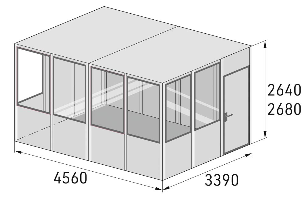 Mehrzweckraum, Standard-Ausführung, für den Innenbereich, Fläche 7,74 qm, 10 Elemente, BxTxH 3390x2280x2680 mm E6475802