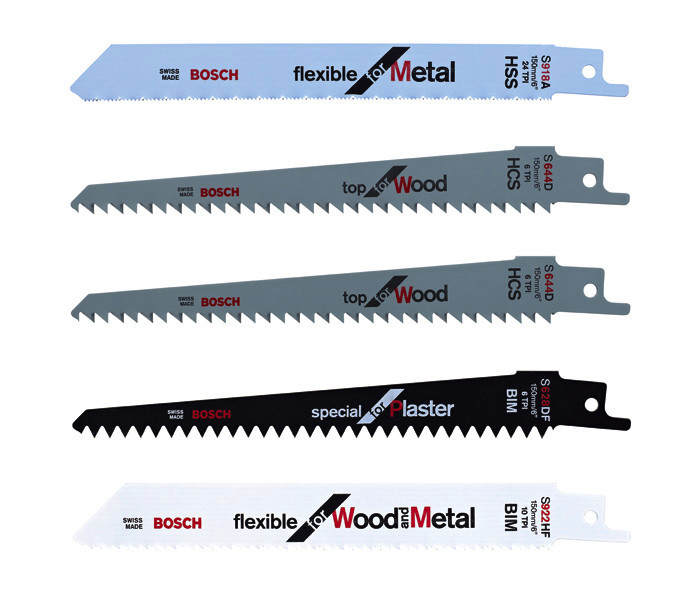 Systemzubehör Messer-Set. 5 Ersatzsägeblätter (2 x für Holz, 1 x für Metall, 1 x für Holz und Metall, 1 x für Putz). Kartonschachtel