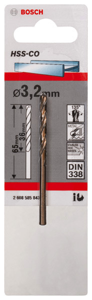 Metallbohrer HSS-Co, DIN 338, 3,2 x 36 x 65 mm, 1er-Pack
