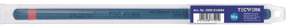 HSS Bi-Metall · einseitig gezahnt · hohe Schnittgeschwindigkeit und Standzeit · Zähne aus HSS (DIN 1.3343), Härte 63 - 65 HRC, gefräst und gewellt · Blattkörper aus Federstahl (50 HRC) · unzerbrechlich · Pack mit 10 Sägeblättern
