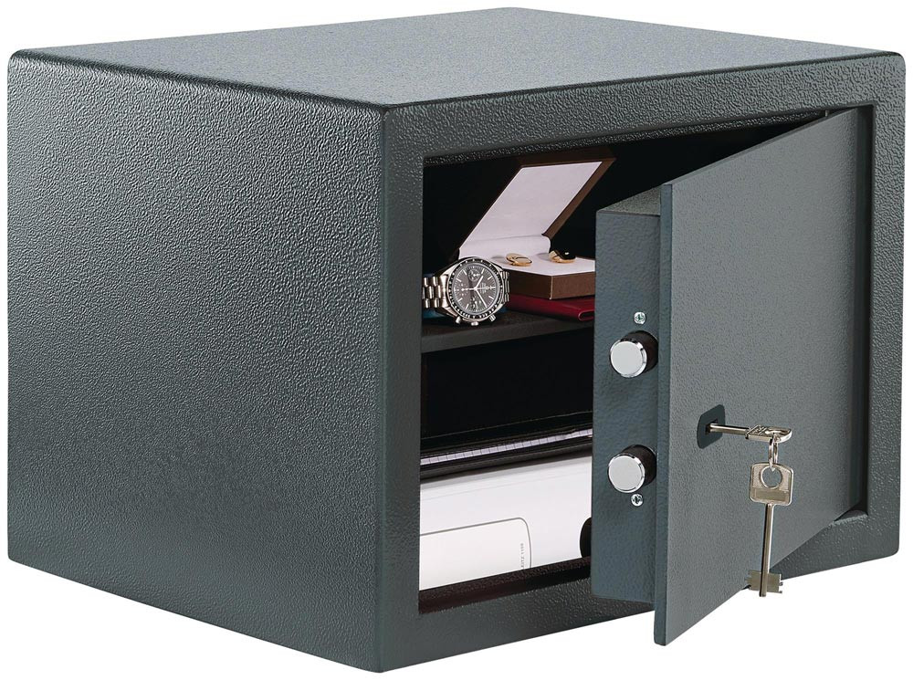 robuster einwandiger Korpus · Tür doppelwandig · Verstärkte Riegelbolzen · Aufbohrschutz · für Wand- und Bodenbefestigung vorgerichtet (inkl. Befestigungsmaterial) · ideal für den Einbau in Schränke und andere Möbelstücke