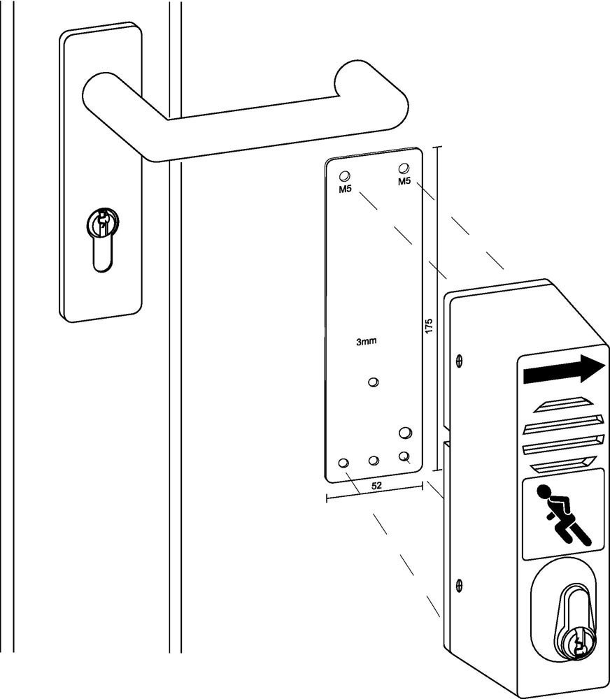 Montageplatte 901670 Montage an Brandschutztüren DINlinks / rechts L175xB52mm