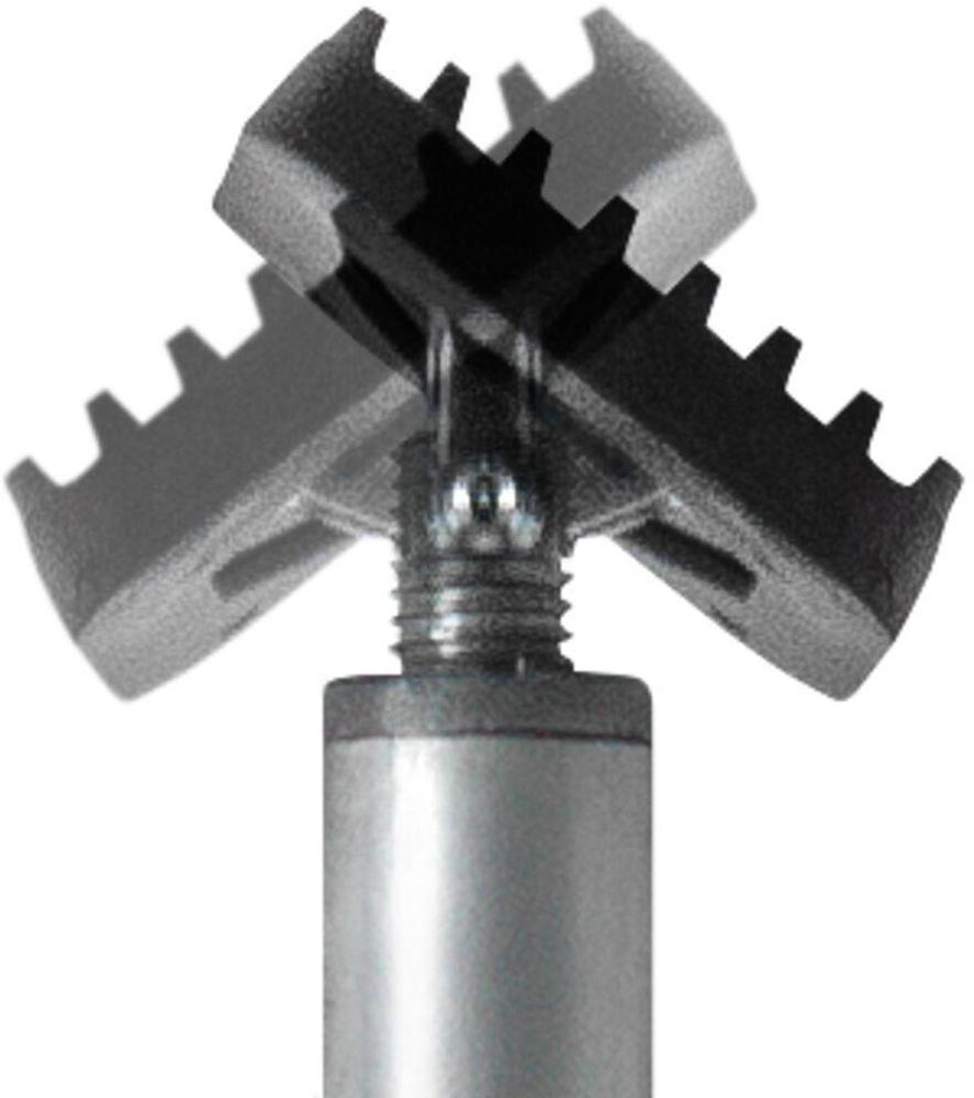 bis zu maximal bis 350 kg belastbar bei komplett eingefahrener Teleskopstange · äußerst stabile Konstruktion durch hochbelastbare Stahlrohre und rutschsichere PVC-Kontaktflächen (9 x 7 cm) · Einhandbedienung dank 2-Komponenten-Kunststoffgriff mit Pumpmechanismus · Schnellverschiebe-Taste zum schnellen Ein- und Ausfahren der Teleskopstange · regulierbare Haltekraft durch Drehen der Stütze am Griff · Einsatz auch in Schrägen durch stufenlos schwenkbare Kontaktflächen von -45° bis +45°