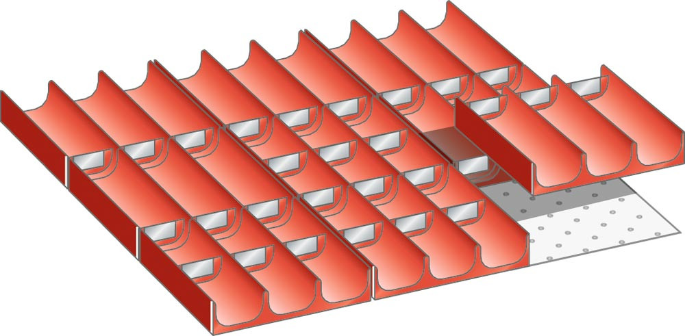 Mulden, Fronthöhe 50 mm, 9 Muldenteile 3-teilig, 30 Muldenwände 3-teilig, Schubladennutzgröße BxT 459x459 mm