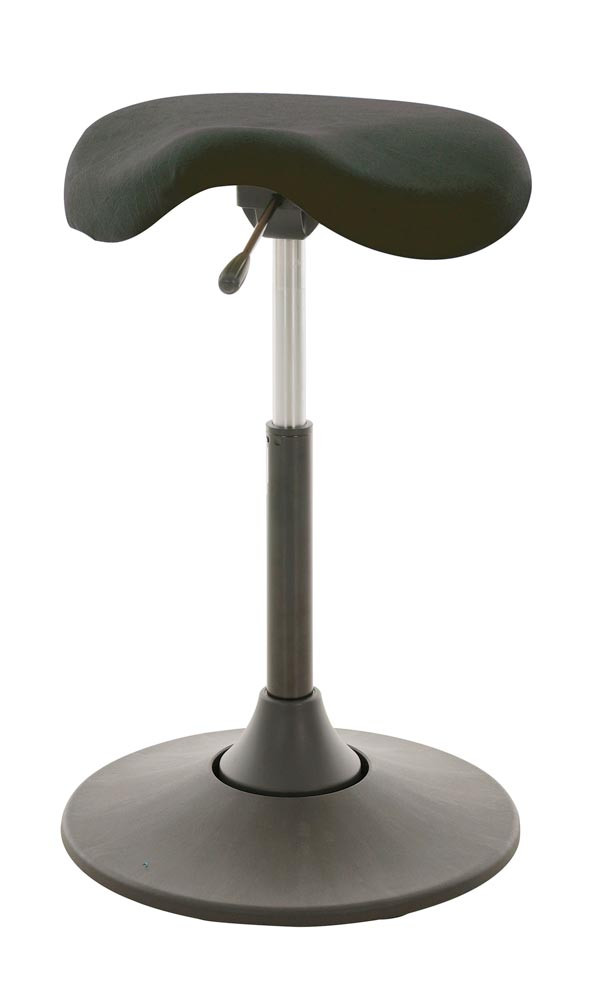 Multibewegliche Stehhilfe, Sattelsitz in Kunstleder schwarz, beweglicher Kunststoff-Tellerfuß Sitzhöhe: 510-700mm