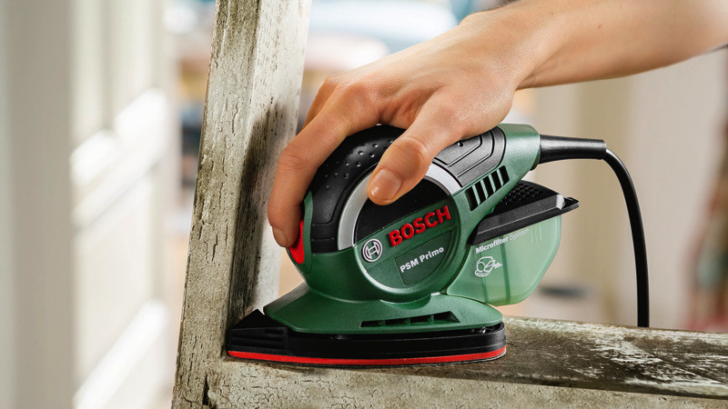 Multischleifer PSM Primo. Kompakter Handschleifer für schnelles und einfaches Arbeiten in schwer zugänglichen Bereichen. Schlanke Schleifplatte für Arbeiten in schwer zugänglichen Bereichen, in Ecken und an Kanten. Microfilter-Staubbox reduziert Staub für mehr Sauberkeit im Arbeitsbereich. Klettverschlusssystem ermöglicht einfache Schleifpapierwechsel. Perfekt für kleinere Schleifarbeiten und Reparaturen. Verwendung für Hartholz, Weichholz, gestrichene und lasierte Oberflächen. 1 Schleifpapier K 80. Kartonschachtel