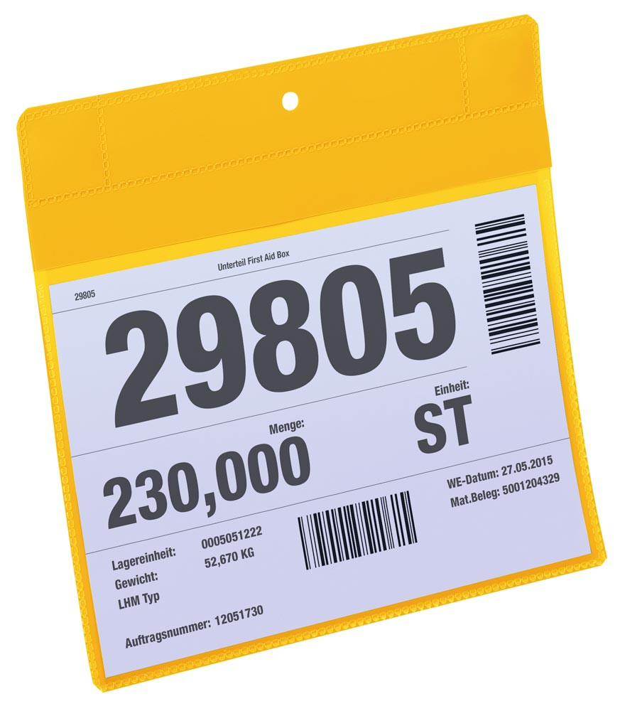 Neodym-Magnettasche A5 quer, BxH 210x148 mm, starke Haftkraft durch zwei Neodym-Stark-Magnete, gelb, Pack mit 10 Stück, Mindestabnahme 2 Pack