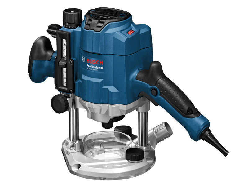 Oberfräse GOF 1250 CE, Die kabelgebundene Präzisionsoberfräse GOF 1250 CE Professional bietet komfortables Arbeiten bei guter Leistung. Das ergonomische Griffdesign ermöglicht eine bedienfreundliche Handhabung unabhängig von der Griffposition und damit eine hervorragende Werkzeugführung. Sie verfügt über eine patentierte Frästiefen-Feineinstellung in 1/10-mm-Schritten. Darüber hinaus sorgt die einzigartige Spindelarretierung für einen einfachen und schnellen Fräserwechsel. Dieses Elektrowerkzeug eignet sich für Fräsarbeiten in Holz und Plastik. Das Gerät ist kompatibel mit verschiedenen Bosch Führungsschienen und dem Bosch Click & Clean-Absaugsystem. Ferner verfügt die GOF 1250 CE Professional über Funktionen wie konstante Drehzahl und Drehzahlvorwahl. Maulschlüssel 19 mm (ET-Nr. 1 907 950 511). Parallelanschlag mit Feineinstellung (2 607 001 387). Kopierhülsenadapter (ET-Nr. 2 610 991 370). Spannzange mit Überwurfmutter 8 mm (2 608 570 102)