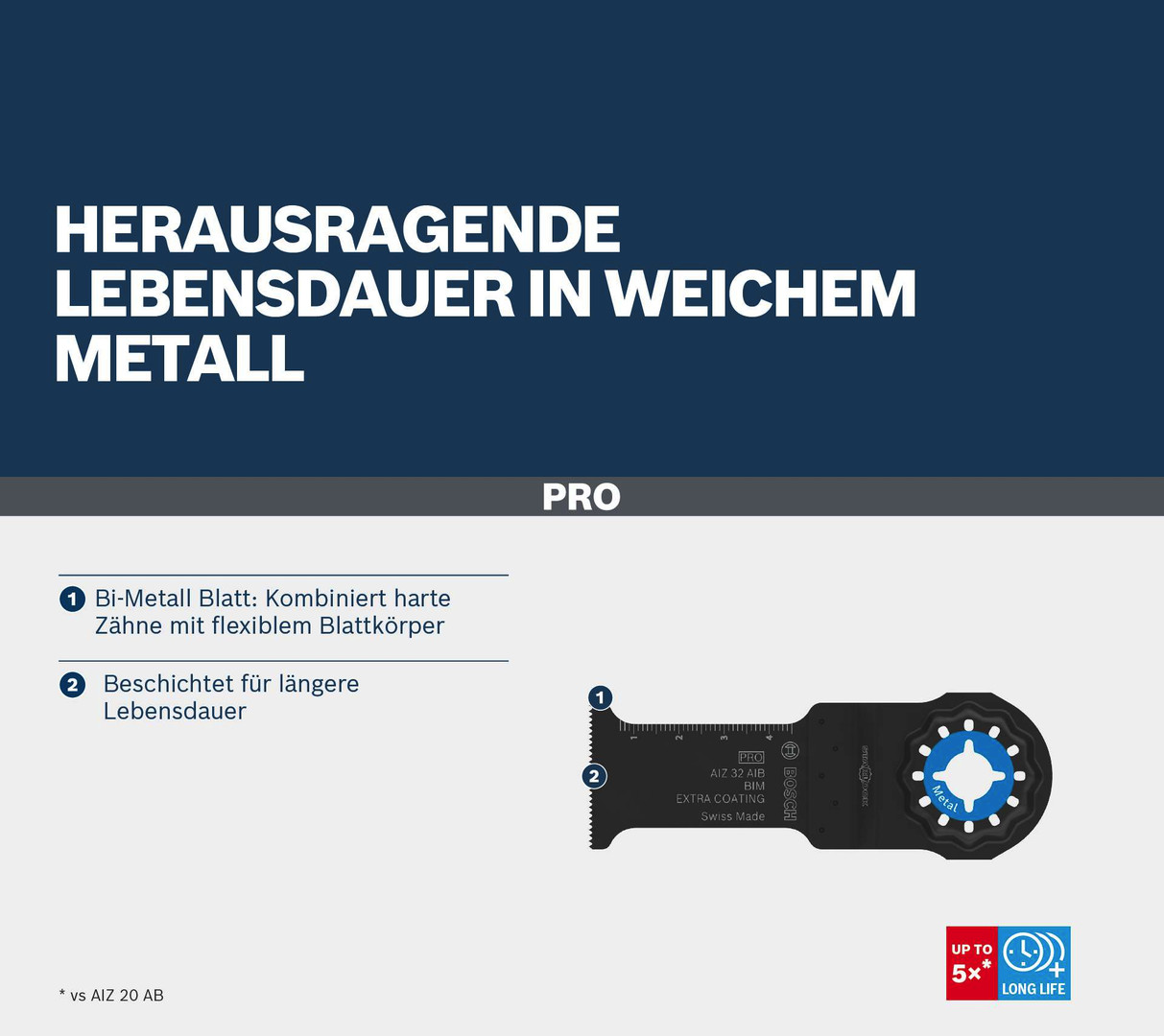 Herausragende Lebensdauer in weichem Metall! Bi-Metall Blatt: Kombiniert harte Zähne mit flexiblem Blattkörper Das Multifunktionswerkzeug ist ideal, um an schwer zugängliche Stellen zu gelangen und alte Rohre aus Nichteisenmetall und Formstücke abzutrennen präzise und ohne zusätzlichen Arbeitsaufwand. Das PRO AIZ 32 AIB bietet eine überzeugende Lebensdauer und hilft dir, effizienter zu arbeiten.