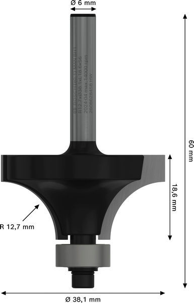 PRO Abrundfräser, R 12,7, Schaft 6 mm