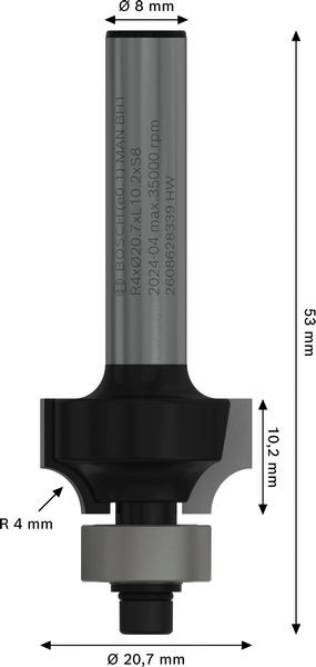 PRO Abrundfräser, R 4, Schaft 8 mm