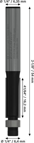 PRO Bündigfräser mit untenlieg. Führungskugellager, Ø 1/4"xL 21/32", Schaft 1/4"