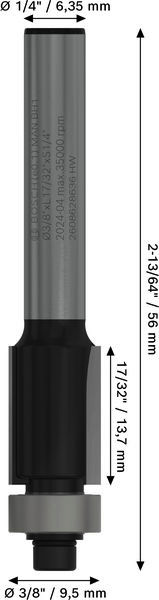PRO Bündigfräser mit untenlieg. Führungskugellager, Ø 3/8"xL 17/32", Schaft 1/4"