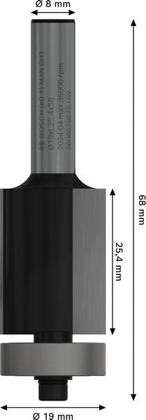 PRO Bündigfräser mit untenliegendem Führungskugellager, Ø19 x L25,4, Schaft 8 mm