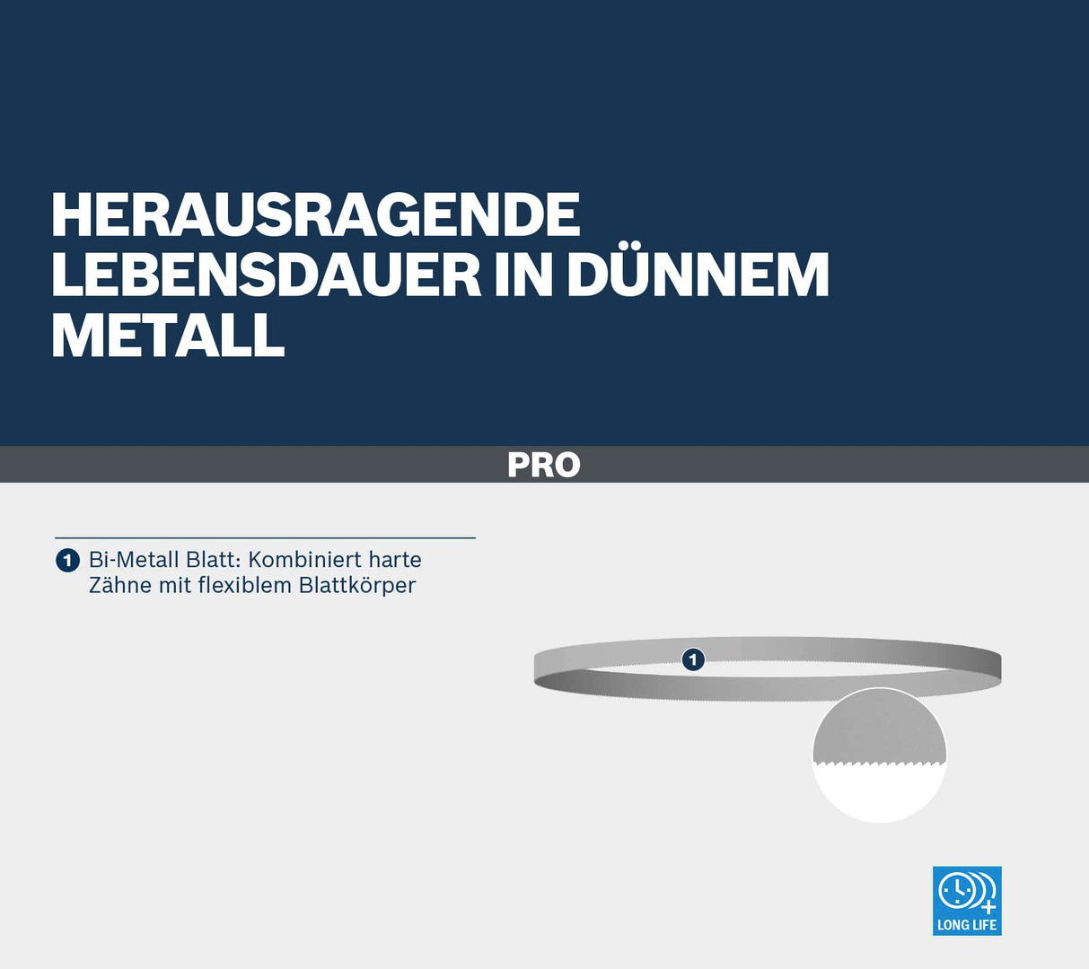 Herausragende Lebensdauer in dünnem Metall! Bi-Metall Blatt: Kombiniert harte Zähne mit flexiblem Blattkörper Das Schneiden von Metall mit einer Bandsäge kann eine echte Belastung für die Sägeblätter sein. Mit dem PRO CB4418 Bandsägeblatt hast du ein langlebiges Zubehör zur Hand, mit dem du hochwertige Schnitte erzielen kannst.