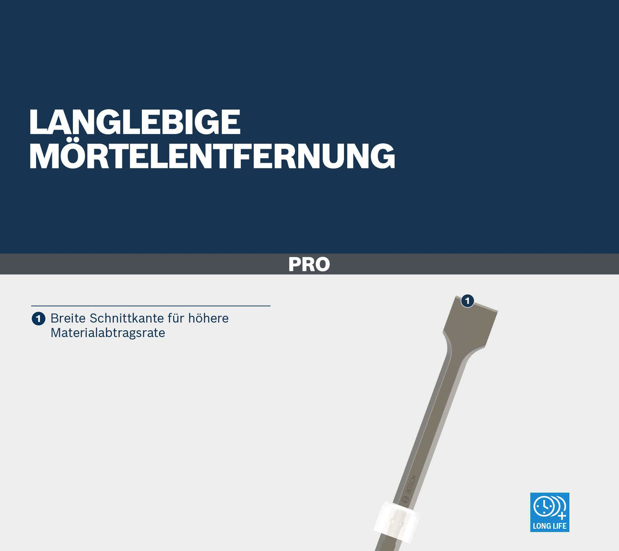 Langlebige Mörtelentfernung! Breite Schnittkante für höhere Materialabtragsrate Bist du Renovierer von Innenräumen und benötigst einen langlebigen Meißel, um Mörtel und Putz von Wänden und Böden zu entfernen? Wir haben den PRO HEX 19-4C entwickelt, damit du die Arbeit zuverlässig erledigen kannst.