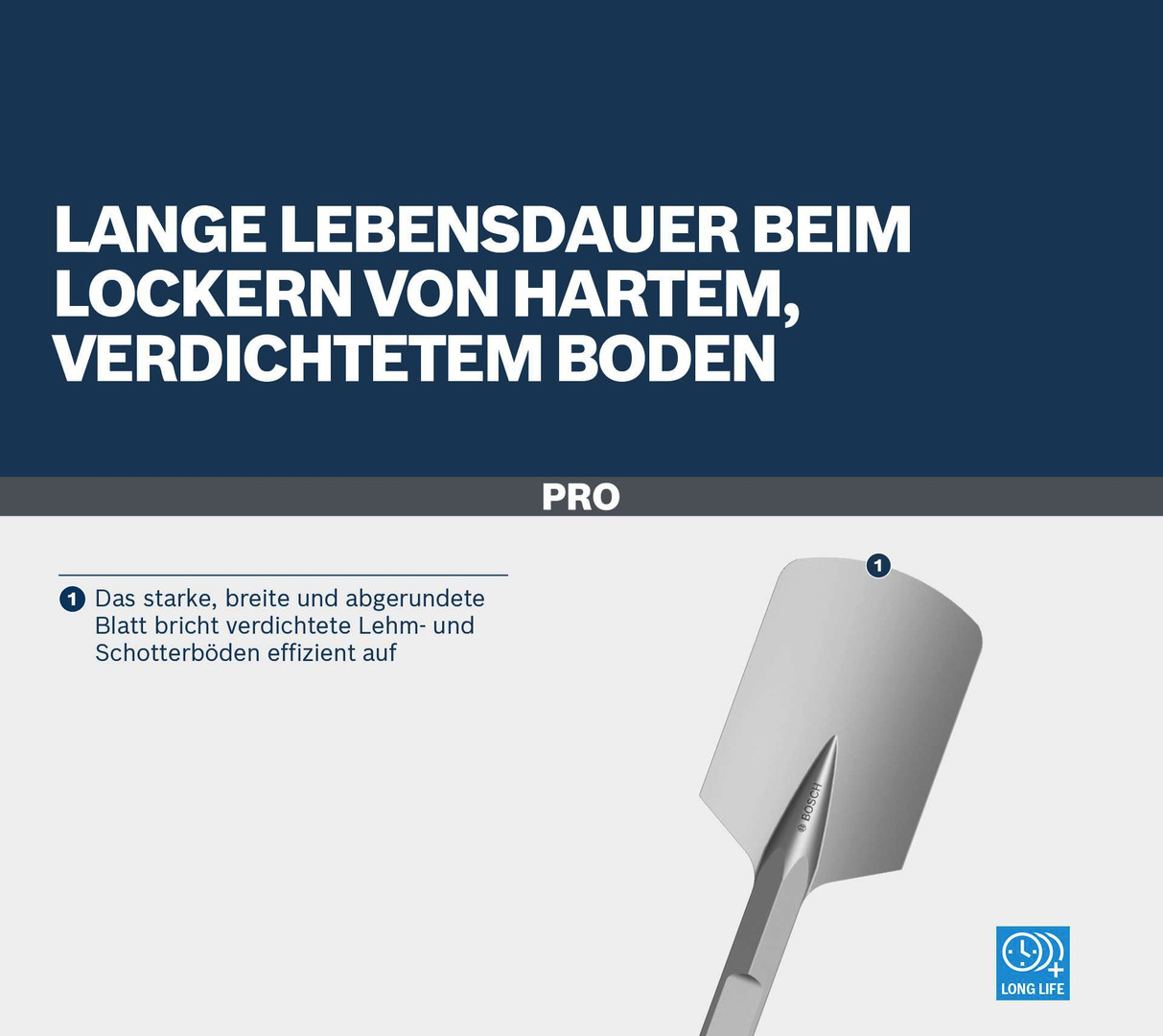 Lange Lebensdauer beim Lockern von hartem, verdichtetem Boden! Das starke, breite und abgerundete Blatt bricht verdichtete Lehm- und Schotterböden effizient auf Hast du Probleme beim Graben in trockenen, verdichteten Lehm- und Schotterböden? Der langlebige PRO HEX 28-4C-Spatmeißel erleichtert das Aufbrechen harter Böden, damit du allgemeine Arbeiten im Garten? und Landschaftsbau effektiv ausführen kannst.