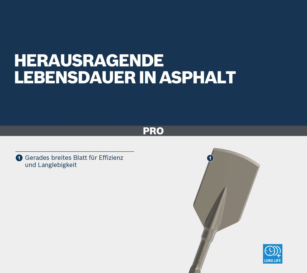 Herausragende Lebensdauer in Asphalt! Gerades breites Blatt für Effizienz und Langlebigkeit Bist du Straßenmeister und möchtest problemlos Asphalt schneiden? Dann ist der PRO HEX 30 Asphaltschneider die richtige Wahl. Es verfügt über ein breites, strapazierfähiges Blatt, mit dem du Asphalt effektiv schneiden kannst immer und immer wieder.