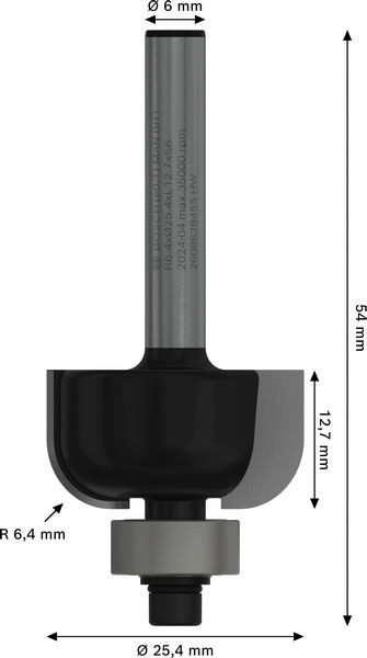 PRO Hohlkehlfräser, R 6,4, Schaft 6 mm