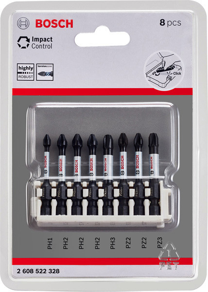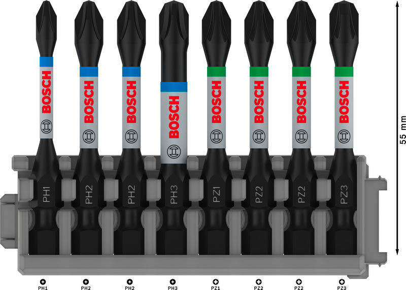 PRO Impact Schrauberbit-Set, PH1/PH2/PH3/PZ1/PZ2/PZ3, 55 mm, 8-tlg