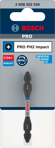 Robustes Eindrehen von Schrauben! Benötigst du Schrauberbits, die für anspruchsvolle Installationsaufgaben geeignet sind? Die Bits, die stark sind, lange halten und leicht zu identifizieren sind? Probiere PRO Impact PH2. Sie wurden aus modifiziertem Stahl hergestellt, um sicherzustellen, dass sie stark sind. Wir haben sie an beiden Enden mit Schrauberköpfen versehen, um ihre Lebensdauer zu verdoppeln. Durch die Lasermarkierungen kannst du den benötigten Bit im Handumdrehen auswählen.