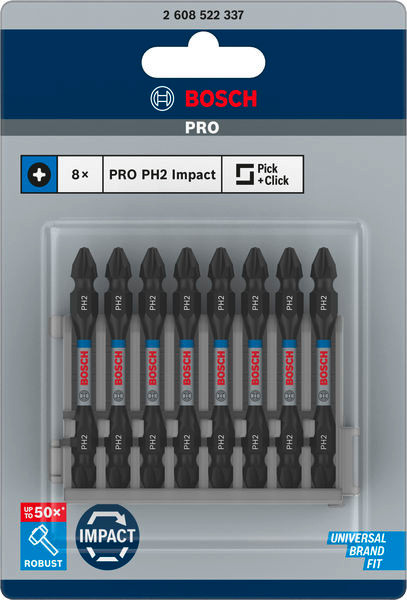PRO Impact Schrauberbit mit Doppelklingen und Pick and Click, PH2, 65 mm, 8-tlg.
