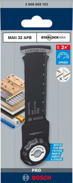 Schnelles Schneiden von Holz, weichem Metall und Kunststoff! Bi-Metall Blatt: Kombiniert harte Zähne mit flexiblem Blattkörper Profis, die mit Multifunktionswerkzeugen Tauchschnitte, Bündigschnitte und präzise Ausschnitte ausführen möchten, benötigen ein ebenso vielseitiges Blatt, das diese Aufgaben hervorragend meistert: Das PRO MAII 32 APB ist nicht nur in vielen Materialien äußerst leistungsfähig, sondern bietet auch eine hohe Schnittgeschwindigkeit für maximale Effizienz.