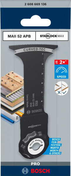 Schnelles Schneiden von Holz, weichem Metall und Kunststoff! Bi-Metall Blatt: Kombiniert harte Zähne mit flexiblem Blattkörper Profis, die mit Multifunktionswerkzeugen Tauchschnitte, Bündigschnitte und präzise Ausschnitte ausführen möchten, benötigen ein ebenso vielseitiges Blatt, das diese Aufgaben hervorragend meistert: Das MAII 52 APB ist nicht nur in vielen Materialien äußerst leistungsfähig, sondern bietet auch eine hohe Schnittgeschwindigkeit für maximale Effizienz.