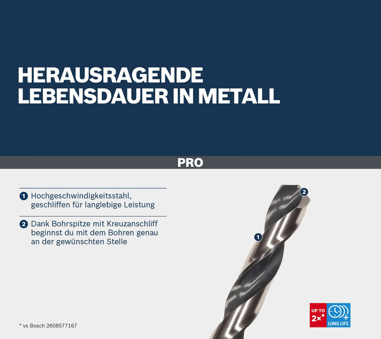 Herausragende Lebensdauer in Metall! Hochgeschwindigkeitsstahl, geschliffen für langlebige Leistung Bist du Bauarbeiter oder Installateur und auf der Suche nach langlebigen Bohrern, um mit deinem Bohrschrauber oder Schlagschrauber in Metall bohren zu können? Dann sind die PRO Metal HSS-G Impact Spiralbohrer die richtige Wahl. Mit ihnen kannst du effektiv in Stahl, Nichteisenmetalle und Kunststoff bohren.