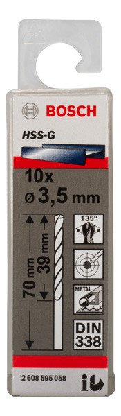 PRO Metal HSS-G Spiralbohrer, 3,5 x 39 x 70 mm, 10-tlg.