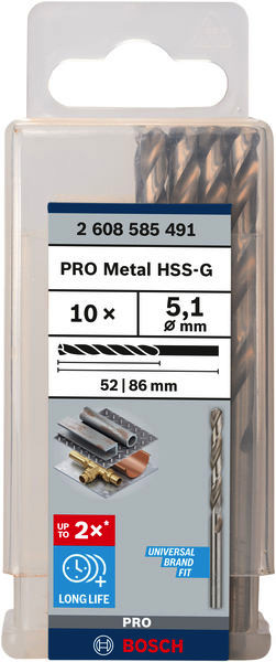 PRO Metal HSS-G Spiralbohrer, 5,1 x 52 x 86 mm, 10-tlg.